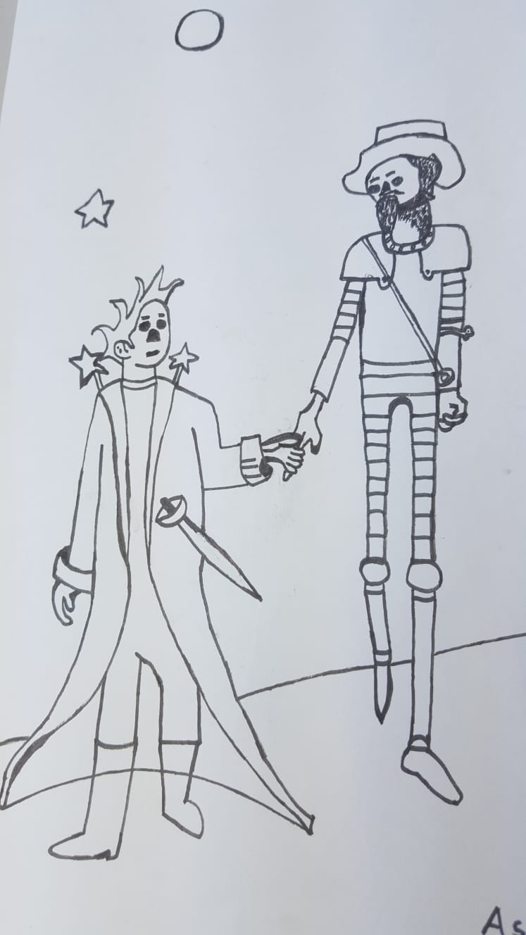 Además, la entrada de la biblioteca se ha engalanado con los dibujos de alumnado de 3º de ESO y optativa de Dibujo de 4º de ESO que hacen guiños a El Principito (de Antoine de Saint-Exupéry), El Quijote (de Miguel de Cervantes) y Alicia en el país de las maravillas (de Lewis Carroll).