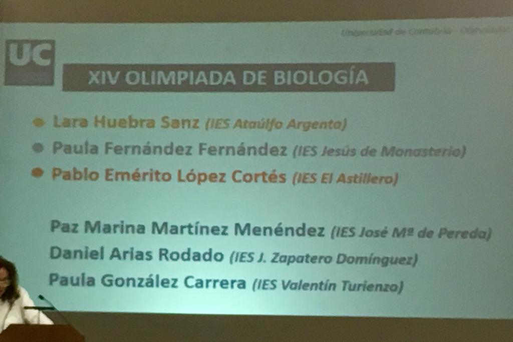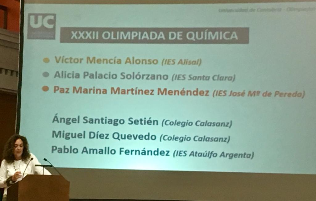 El pasado 22 de mayo, a las 19:00 horas se celebró en el Salón de Actos del Paraninfo de la Universidad de Cantabria el Acto de entrega de los premios a los ganadores de la Fase Regional de las diferentes olimpiadas del año 2019.