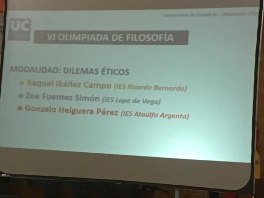 - Olimpiada de Filosofía (modalidad Dilemas Éticos): Gonzalo Helguera Pérez (3º)