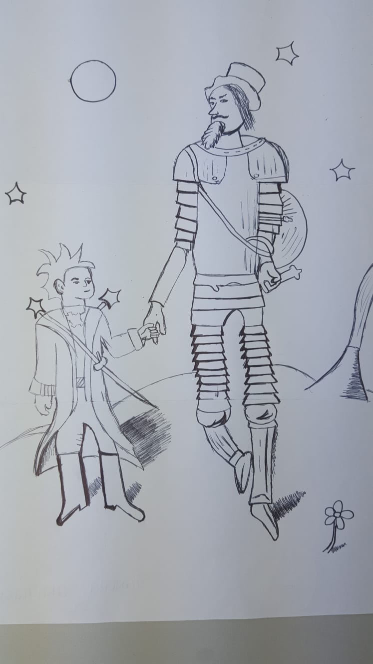 Además, la entrada de la biblioteca se ha engalanado con los dibujos de alumnado de 3º de ESO y optativa de Dibujo de 4º de ESO que hacen guiños a El Principito (de Antoine de Saint-Exupéry), El Quijote (de Miguel de Cervantes) y Alicia en el país de las maravillas (de Lewis Carroll).