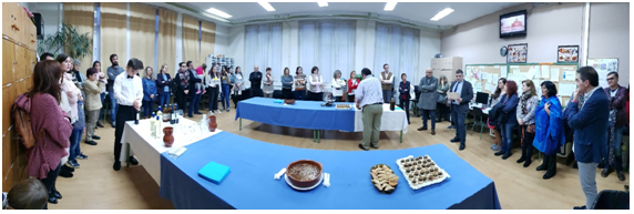 Viene esto a cuento porque este curso la semana cultural de IES Ataulfo Argenta, estará dedicada al Siglo de Oro español. El proyecto cultural arrancó el pasado jueves 12 de diciembre, con un acto oficial en el que nos acompañaron representantes de la Consejería (Javier Gutiérrez, Director General de Personal, y la inspectora Mª Jesús Reimat), del AMPA, del alumnado, profesorado del Centro y de la ciudad. Se degustó un menú inspirado en la cocina del Siglo de Oro, preparado por el Ciclo de Restauración. Tras unas palabras del director del IES, Miguel Ángel torio, se proyectó un vídeo realizado por los alumnos de tecnología de bachillerato que, a ritmo de Boccerrini (Música nocturna del camino de Madrid), reflejaba el despertar de Castro y los alumnos de camino y entrando en el instituto.